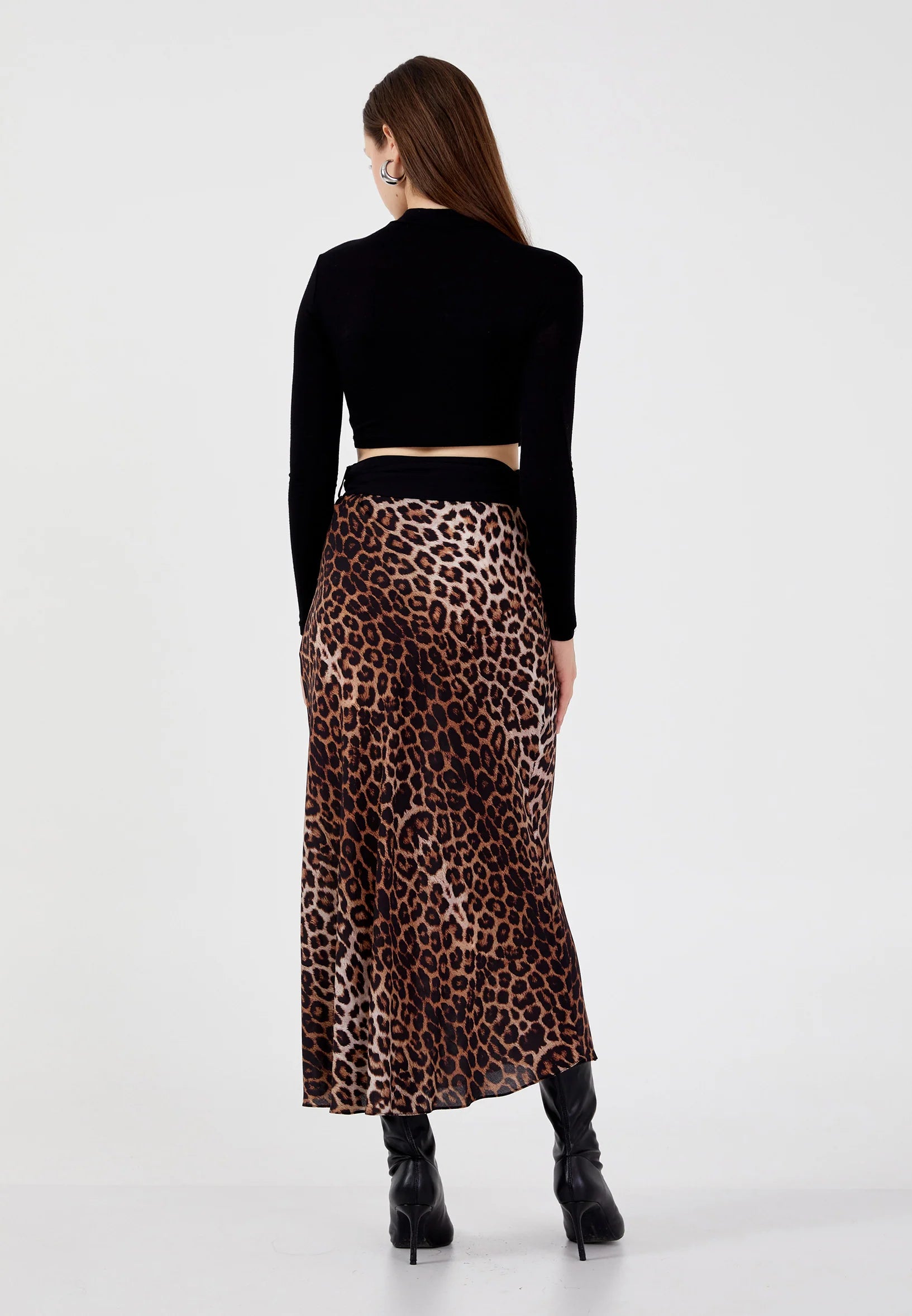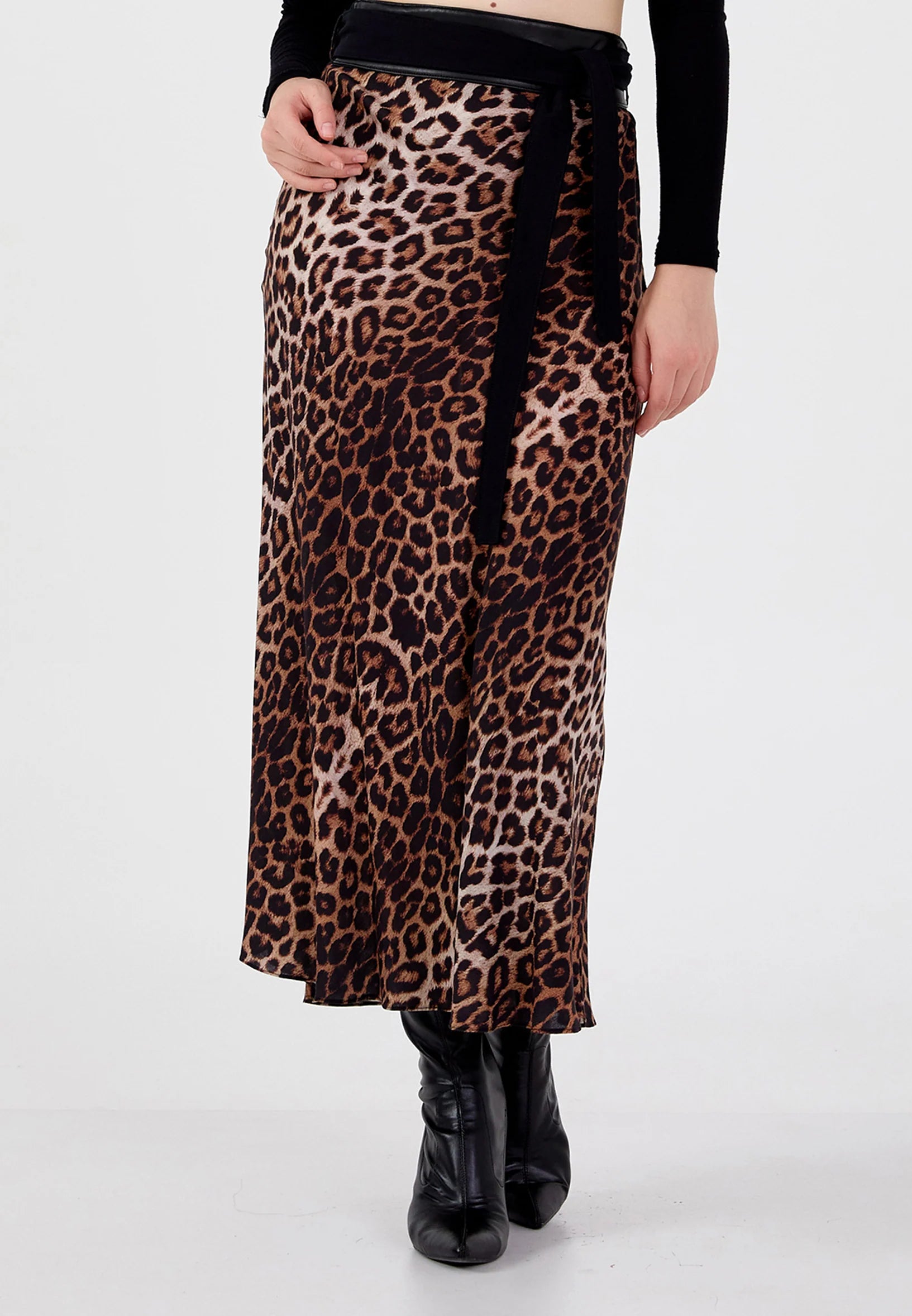 Embrace bold style with this maxi animal print skirt, flowy, eye-catching, and perfect for making a fashion-forward statement.