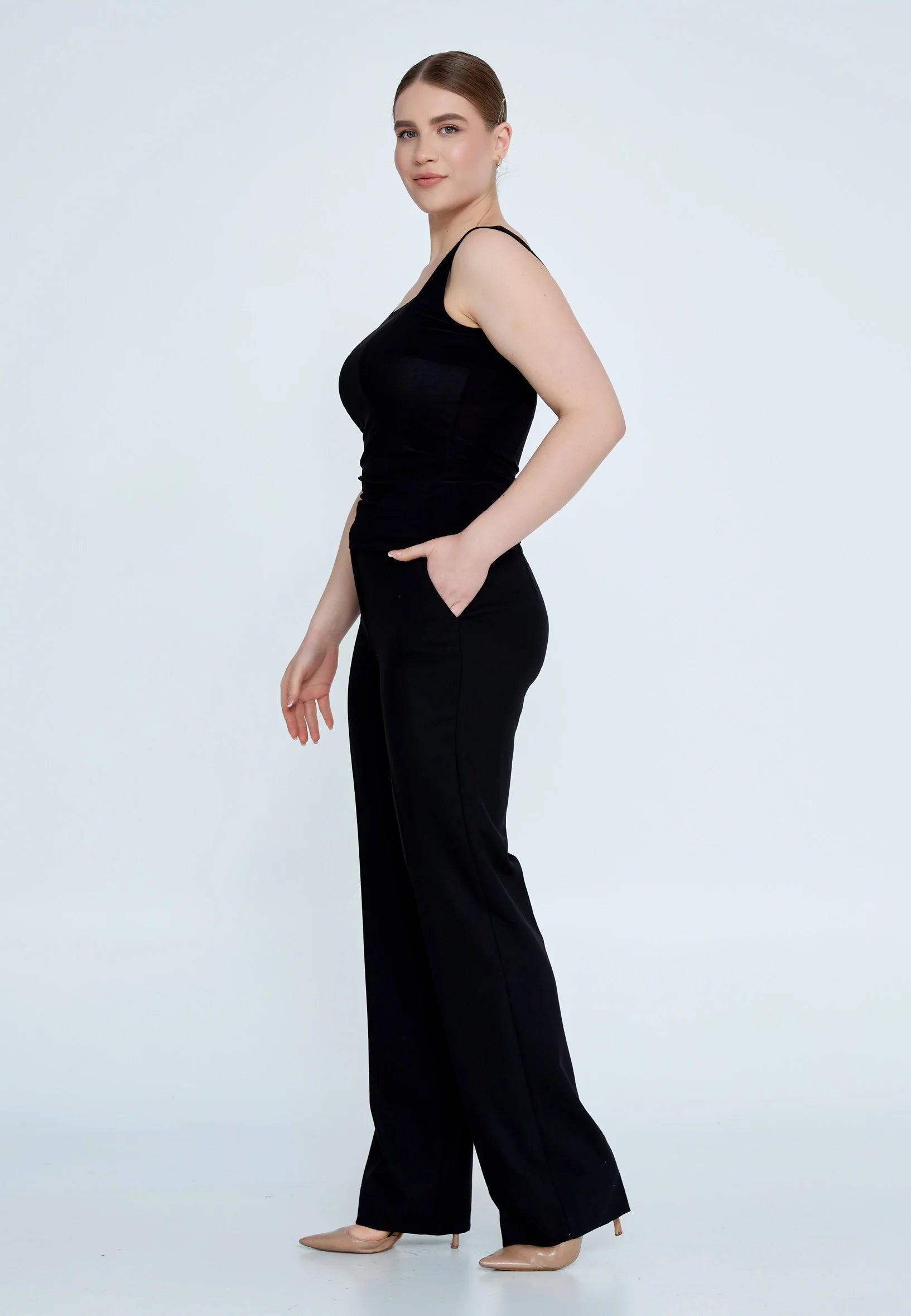 Stay comfortable and chic with this dark navy sleeveless plus size blouse, a versatile wardrobe essential for any occasion.